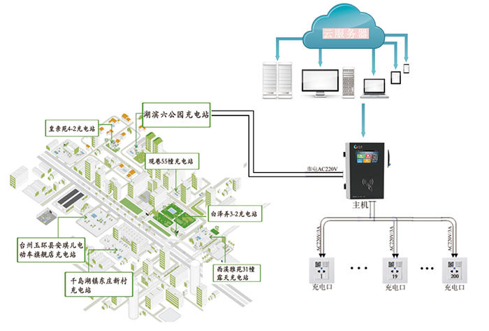 云智能充電系統(tǒng)以電瓶車安全充電為基礎,基于GPRS、Ethernet構建互聯網+物聯網+人聯網的模式, 通過自主研發(fā)智能充電樁、主機、通訊設備、服務端和客戶端應用系統(tǒng),為降低電瓶車充電火災隱患,實現安全充電的終極目標提供技術手段及相關服務。